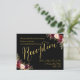 Elegant Faux Gold Foil Glamour Black and Gold Wedding Reception Invitation Card with Burgundy Floral Watercolor - Horizontal Layout. Design by Elke Clarke©. Other styles and colours available in our shop www.zazzle.com/monogramgallery. A simple handwriting script with the word "reception" adorns this classic, yet modern wedding reception insert card. The text is fully customisable. Gold foil is a printed photo effect.