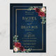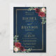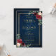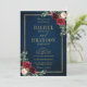 Burgundy Floral Gold Navy Blue Rustic Wedding Invitation
