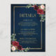Burgundy Floral Gold Navy Blue Wedding Details Enclosure Card