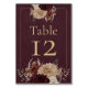 Guide your guests in elegant gothic style with this burgundy floral wedding table number. Featuring bold typography, vintage florals, and a rich burgundy background, it enhances moody and romantic table settings. Ideal for gothic, witchy, or vintage-inspired weddings. Double-sided design ensures visibility from all angles. Coordinates perfectly with the Burgundy Floral Wedding Collection.