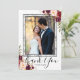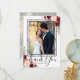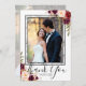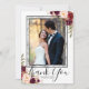 Burgundy Floral Grey Marble Script Photo Wedding Thank You Card