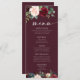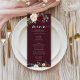 Boho Burgundy and Blush Wedding Menu Card. This menu card is chraacterised by boho burgundy and blush roses and flowers with two modern high-class fonts that shape the trends of the present and future festive events.