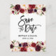 Burgundy Floral Modern Brush Script Save the Date Announcement Postcard