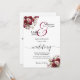 Burgundy Floral Modern Script and Details Wedding Invitation