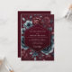 This design features a rich burgundy backdrop adorned with moody, romantic floral illustrations in muted blues and deep reds. Evokes an atmosphere of intimate enchantment and sophisticated elegance. Perfect for a darkly romantic affair.
