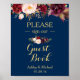Burgundy Floral Navy Blue Guestbook Wedding Sign Poster