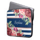 Burgundy Floral Navy Blue Stripes Personalized Laptop Sleeve