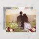 Rustic burgundy floral watercolor design. Place two photos on your wedding thank you cards, one on the front and a second photo on the back. Send out your wedding thank you message as newly weds to your friends and family using this beautifully, simple floral thank you wedding photo postcard with the words "thank you" written in a white hand lettered script font overlay. Wedding Thank You Postcards with Your Photo. Design by Elke Clarke© . Replace the sample photos with your own. Add your personal thank you message on the back or leave blank and hand write your message in person. Other colours available.