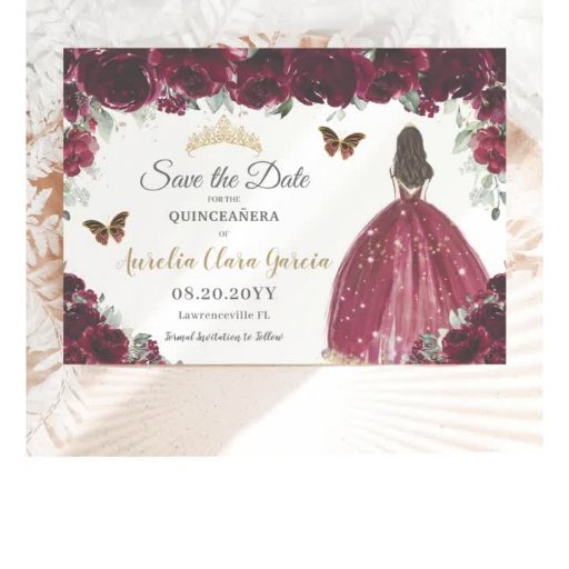 Burgundy Floral Princess Gold Quinceañera Sweet 16 Save The Date