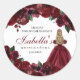 Burgundy Floral Quinceanera Round Stickers