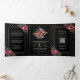 Burgundy Floral Roses All in One Black Wedding Tri-Fold Invitation