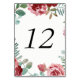 Burgundy Floral Roses Foliage Table Number Cards
