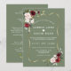 Burgundy Floral Sage Green All In One Wedding Invitation