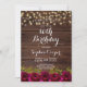 Burgundy Floral String Lights 80th Birthday Party Invitation