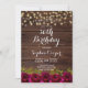 Burgundy Floral String Lights Wood 30th Birthday Invitation