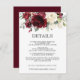 Burgundy Floral Wedding Guest Details Information Enclosure Card