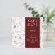 Immerse your guests in the enchanting beauty of your upcoming celebration with the captivating backdrop of wildflowers that grace the design. The delicate and picturesque wildflowers create a whimsical atmosphere, promising an unforgettable wedding experience. With these burgundy save-the-date cards, you not only announce your special day but also offer a glimpse into the unique and enchanting theme that awaits. Capture the essence of your love story with this invitation that seamlessly marries modern aesthetics with the timeless allure of nature.