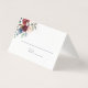 Burgundy Bloom Watercolor Wedding Place Card features a corner border of burgundy watercolor eucalyptus foliage and flowers in blush pink, burgundy, and navy blue. There is space provided for your guest name and their table number. The reverse reveals a matching floral frame with the initials of the bride and groom, and wedding date inside. Designed to match our burgundy floral wedding and event suite.