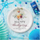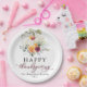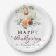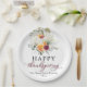 Burgundy Floral White Pumpkin Thanksgiving Paper Plate