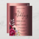 Burgundy florals copper wedding invitation postcard