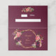 Back: space for you to write by hand the name's of your guests and table number. Burgundy background