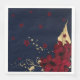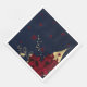 Beautiful burgundy flowers & gold leaves navy blue wedding paper napkin