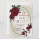 Unique pretty birthday party invitation featuring romantic burgundy flowers and green leaves on a beautiful geometric frame .