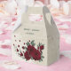 Unique pretty wedding favour box featuring romantic burgundy flowers and green leaves.