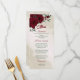 Unique pretty wedding menu featuring romantic burgundy flowers and green leaves.