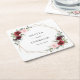 Burgundy Flowers, Pink Flowers, Greenery, Wedding Square Paper Coaster