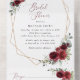 Invite friends and family in style and set the tone for your special day with this charming bridal shower invitation. Design features burgundy watercolor flowers, greenery and gold frame on white background.
