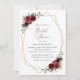 Invite friends and family in style and set the tone for your special day with this charming bridal shower invitation. Design features burgundy watercolor flowers, greenery and gold frame on white background.