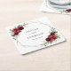 Burgundy Flowers, Red Flowers, Floral Wedding Square Paper Coaster