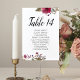 Guide your guests to their proper table with these elegant burgundy floral seating chart cards. Personalise the table number and the guest's name. Part of the Burgundy collection.