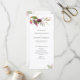 This rustic wedding program features watercolor leaves in shades of burgundy, marsala, burnt orange and green. Personalise your ceremony details in a traditional serif face typography. The boho chic design is carried over to the back with a spray of autumn foliage. This country order of service was created by Victoria. To see the matching wedding set visit VG Invites on Zazzle.