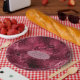 Burgundy red metallic texture wedding paper plates designed to be quickly and easily customised to your event specifics.