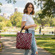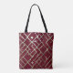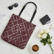 Elevate your everyday style with this luxurious burgundy geometric tote bag featuring a glamorous Art Deco-inspired design. Rich deep maroon background sparkles with subtle glitter effects, accented by elegant metallic gold diagonal lines forming diamonds and scattered confetti-like dots in gold and purple for added shimmer and sophistication.