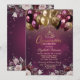 Burgundy Glitter Balloons Flowers Quinceañera Invitation