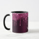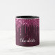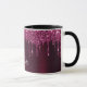 An elegant, girly and glam mug. Deep burgundy background, decorated with faux glitter drips, paint dripping look. Personalise and add your name and monogram initials.