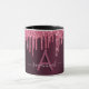 An elegant, girly and glamourous mug. Dark pink cherry coloured faux glitter drips.  Deep, dark moody burgundy gradient background. Personalise and add a name and monogram letter. The name is written with a modern hand lettered style script.  Light pink and burgundy coloured letters.
