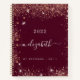 Burgundy background, white text. Decorated with rose gold faux glitter dust. Personalise and add a year, your first name and a title. The name is written with a modern hand lettered style script with swashes.