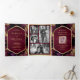 Burgundy Gold Abstract Fluid Ink QR Code Wedding Tri-Fold Invitation