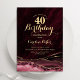 Burgundy and gold agate 40th birthday party invitation. Elegant modern design featuring marsala wine, dark red watercolor agate marble geode background, faux glitter gold and typography script font. Trendy invite card perfect for a stylish women's bday celebration. Printed Zazzle invitations or instant download digital printable template.