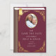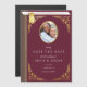 This fun yet romantic wedding save the date card features a book illustration with hand-drawn floral accents in faux gold foil, an oval photo, and vintage inspired typography. The book background and text colors are customizable. The look is romantic and elegant, like a classic storybook! See the collection for additional items.