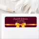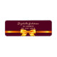 Elegant, classic, glamourous and feminine style address return label. A gold coloured ribbon and bow. A stylish feminine burgundy background. Templates for name and address. Golden coloured letters.