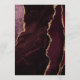 The left-hand edge of this elegant modern wedding menu features a burgundy red watercolor agate border trimmed with faux gold glitter. The customisable text combines gold-coloured whimsical handwriting script and copperplate fonts on a slate black background. The reverse side features a matching burgundy and gold agate design.