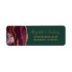 The left-hand edge of this elegant modern wedding invitation return address label features a burgundy watercolor agate border trimmed with faux gold glitter. The customisable text combines gold-coloured handwriting and copperplate fonts on an emerald green background.