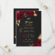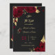 elegant romantic burgundy flowers and gold leaves black save the date invitation