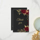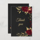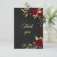 romantic burgundy flowers and gold leaves botanical black thank you card.