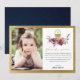 BURGUNDY GOLD FLORAL PHOTO FIRST HOLY COMMUNION THANK YOU CARD